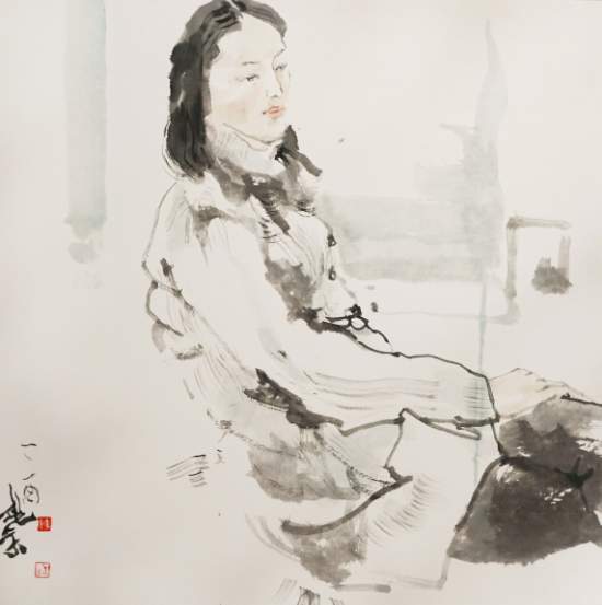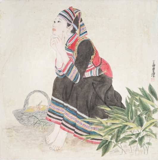 曾理《盼》国画 65×65cm