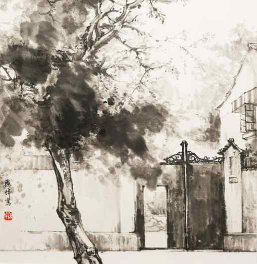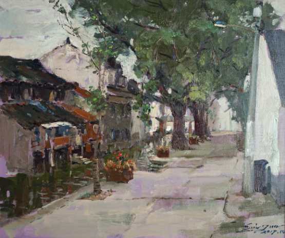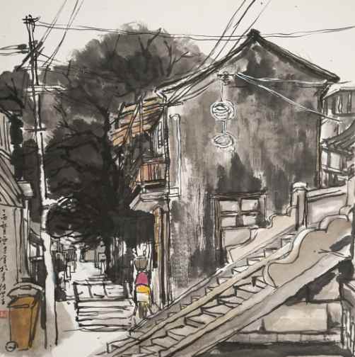 陈炜《武康路街景之一》国画 45×45cm