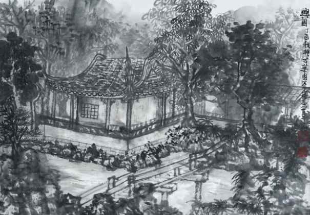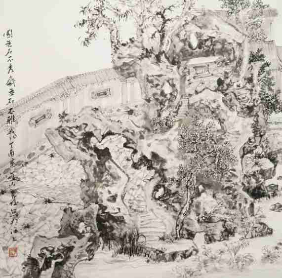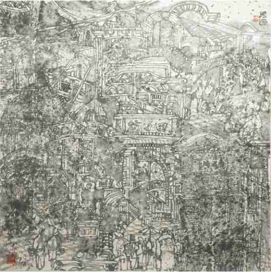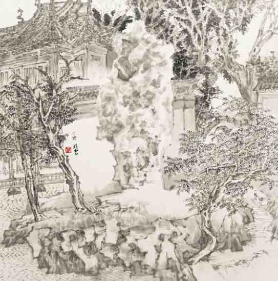 冯祥云《城市山林——豫园》国画 50×50cm