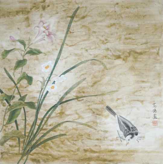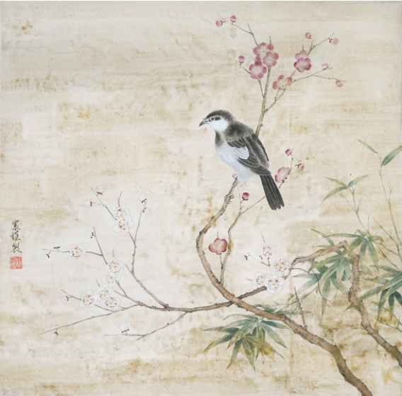 顾寰恺《花鸟图》国画 65×65cm
