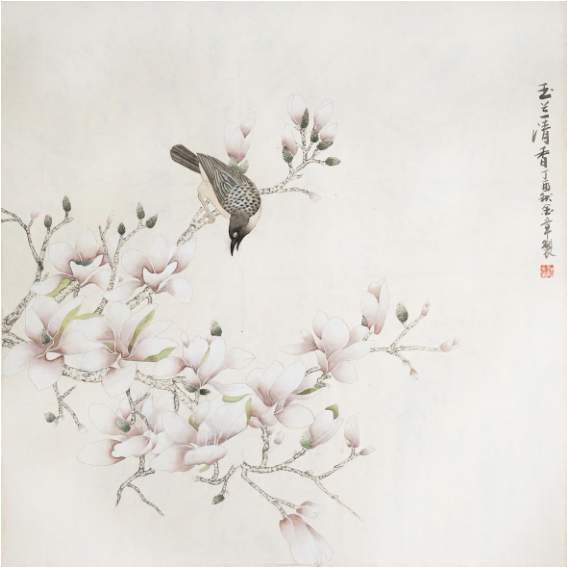 顾金章《玉兰清香》国画 65×65cm