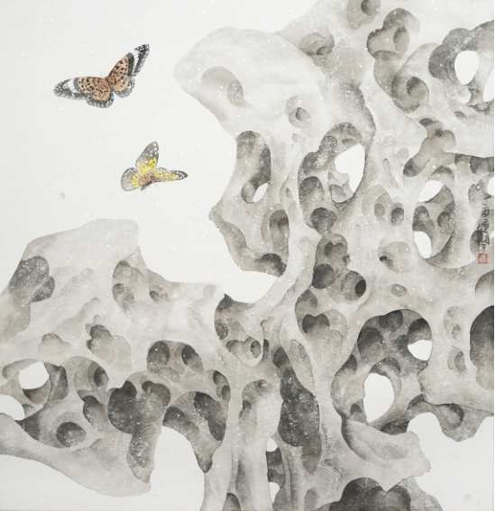 洪樑《蝶》国画 65×65cm