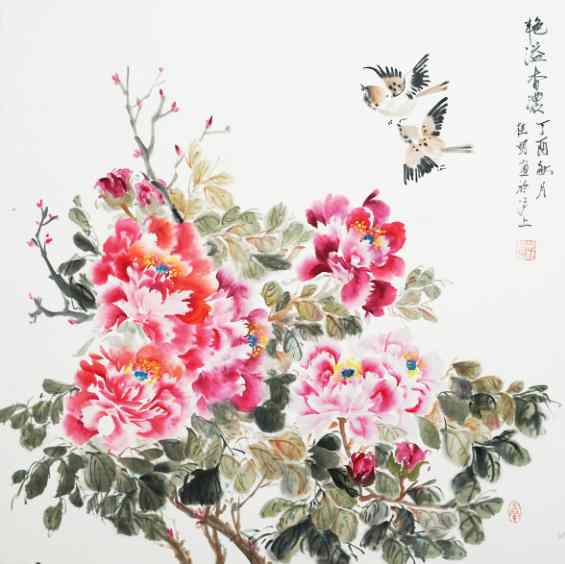 胡桂明《国色天香》国画 65×65cm