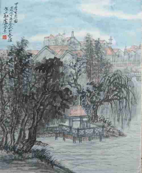 左杭林《奉贤青村镇》国画 68×68cm