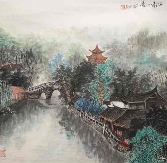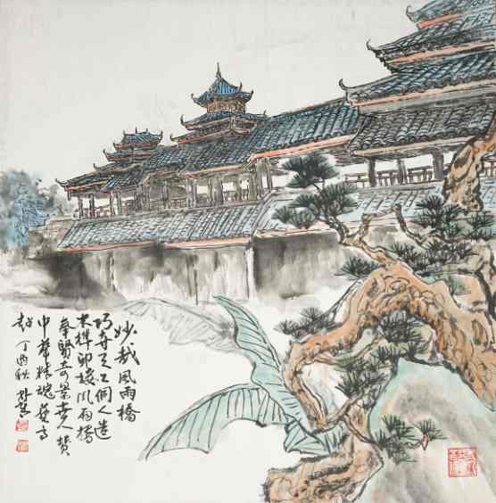 林菁《奉贤风雨桥》国画 69×69cm