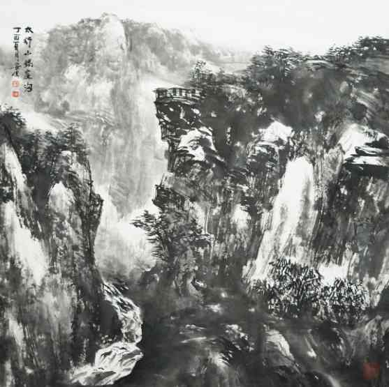 凌安生《太行山锅家沟》国画 68×68cm