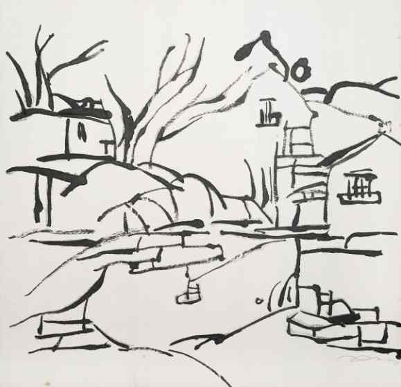 黄根裕《古镇图》钢笔画 39×54cm