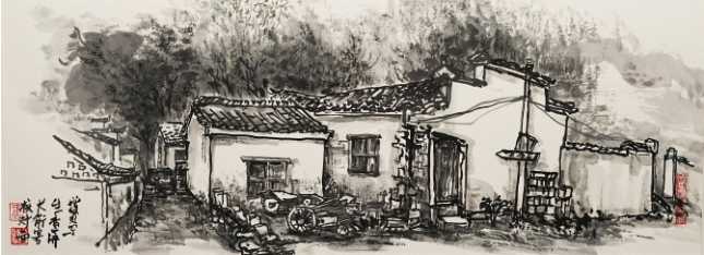 卢增贤《查济写生》国画 59×21cm