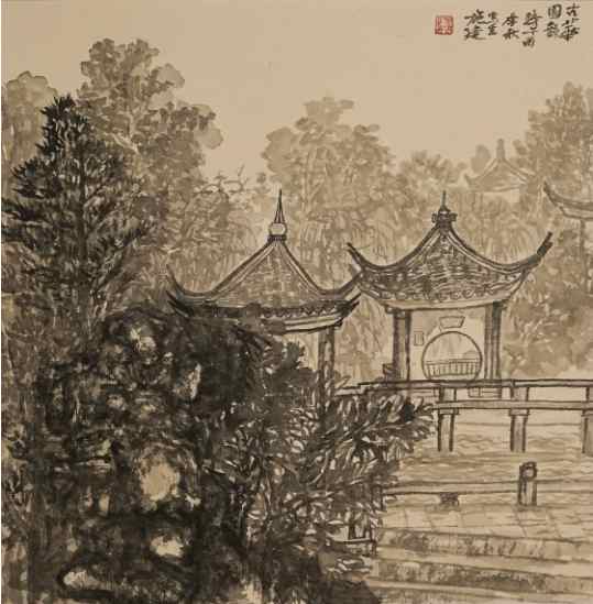 施建《古华园韵》国画 50×50cm