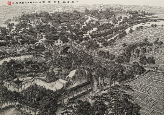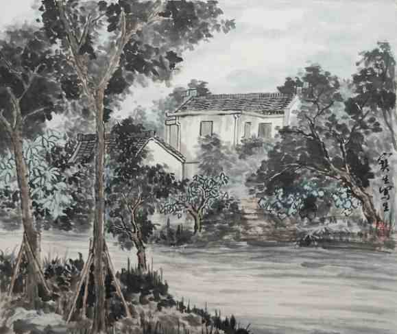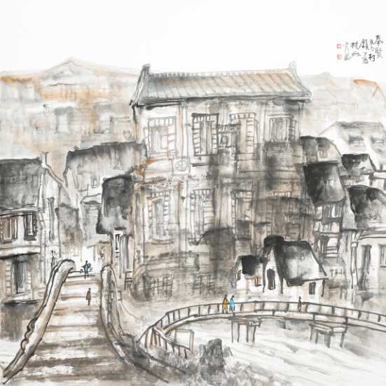 夏建峰《奉贤青村古镇》国画 68×68cm