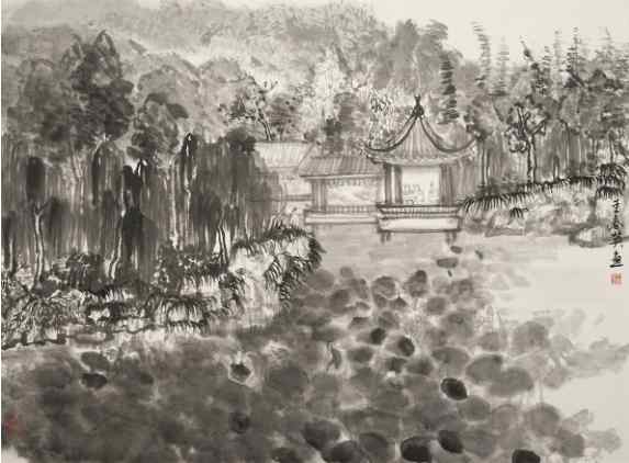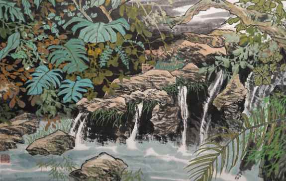 严荣镇《上海植物园一角 2 》国画 49×68cm