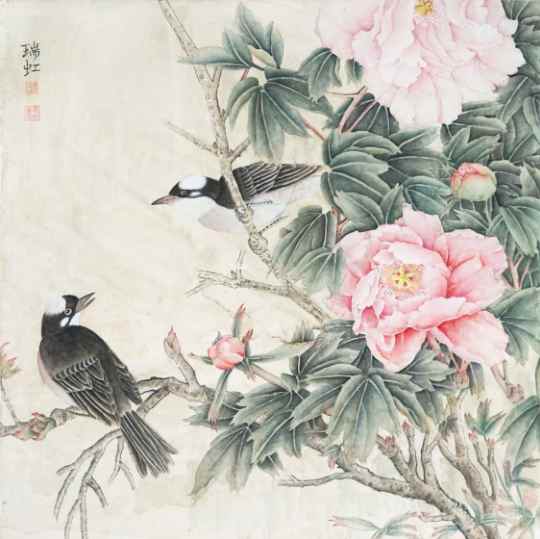 杨瑞虹《国色天香》国画 65×65cm