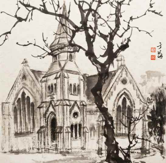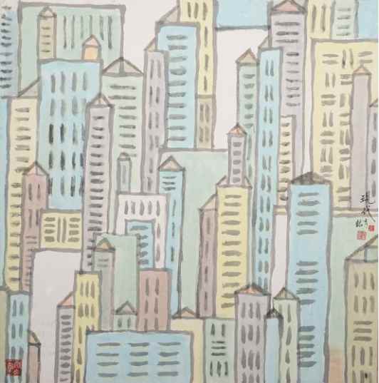 于茵《上海街景写生》国画 31×31cm
