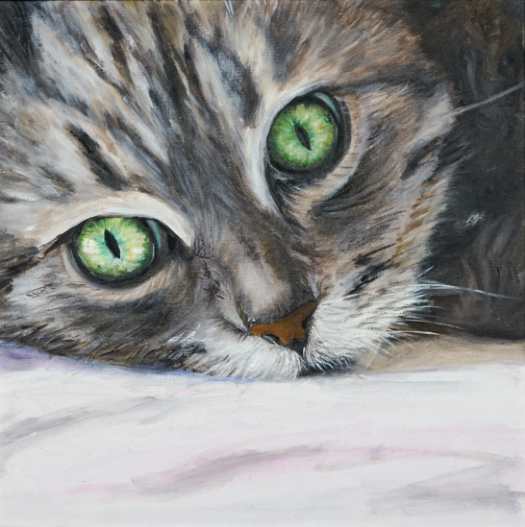 朱丽萍《猫咪》油画 30×30cm