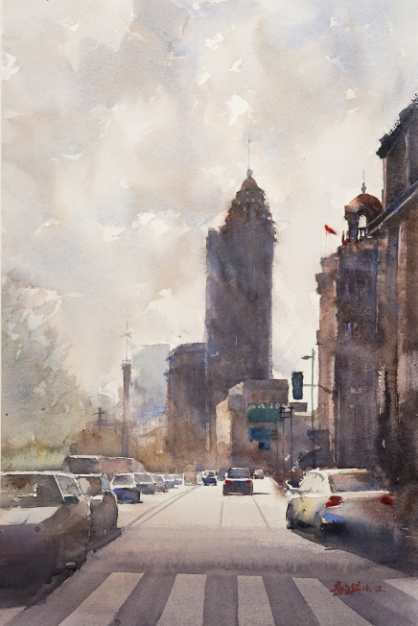 毕文兴《魔都》水彩 51×34cm