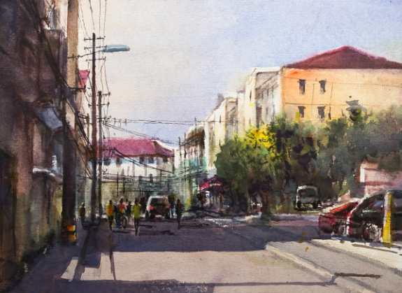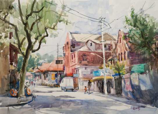 兰平《武进路写生》水彩 57×38cm