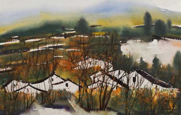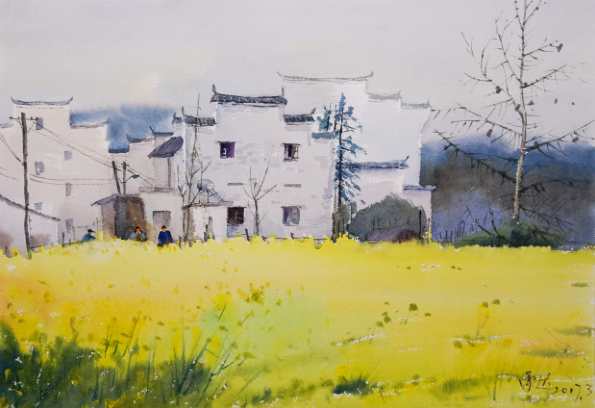 黄鼎锋《查济村口》水彩 48×68cm