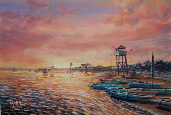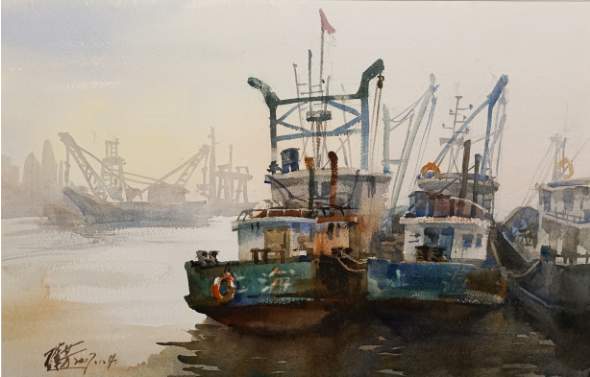 王莲芳《避风的港湾》水彩 38×57cm