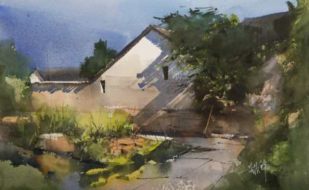 邵怡华《古镇响午》水彩 18×26cm