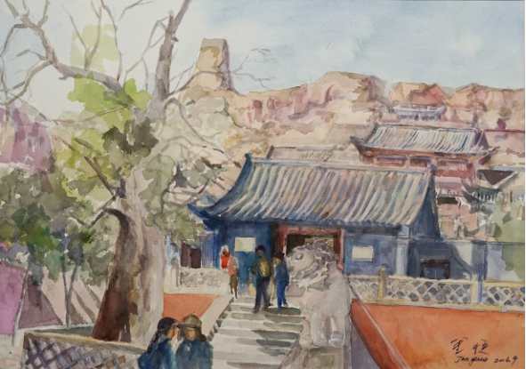 金悦《云岗石窟》水彩 39×54cm