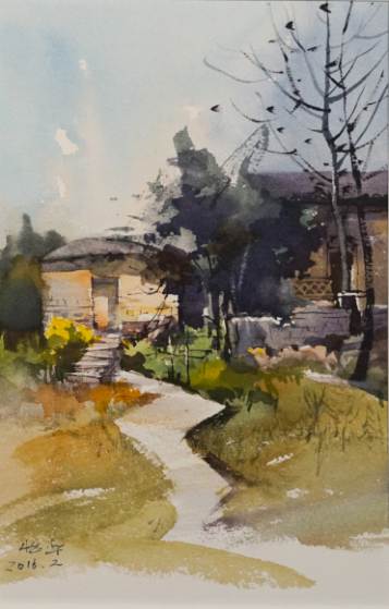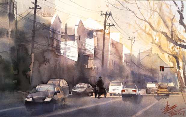 胡亚男《临潼路》水彩 38×53cm