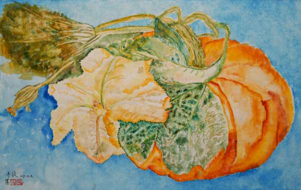 施莲娣《丰收》水彩 35×50cm