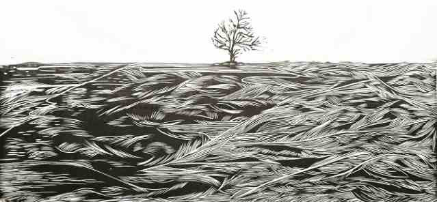 王琦芬《秋天的荷塘》版画 46×122cm