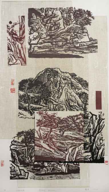 翟军《山韵松风》版画 80×50cm