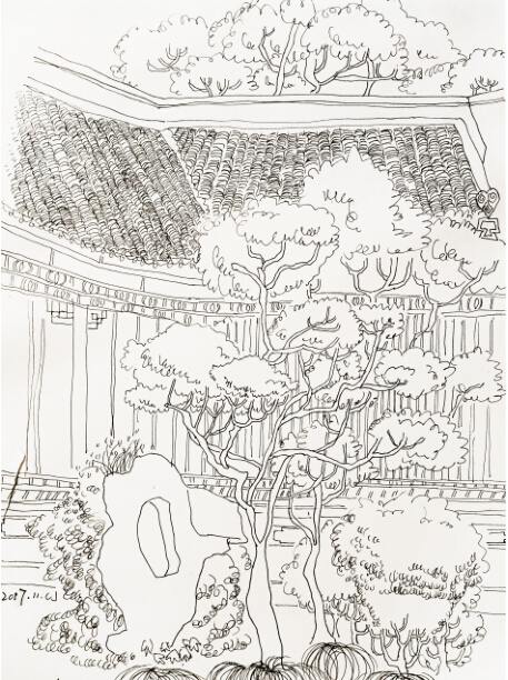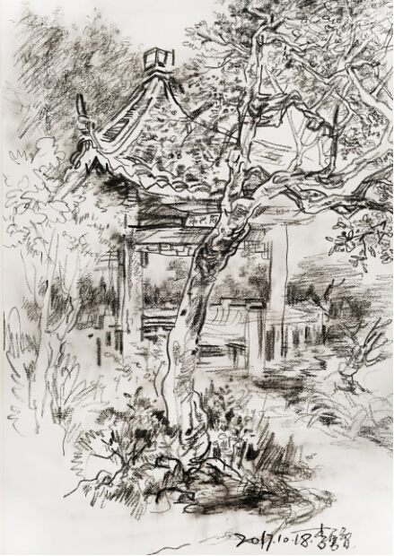 陈瑾《公园美景速写系列——亭台楼阁》速写 29×20cm