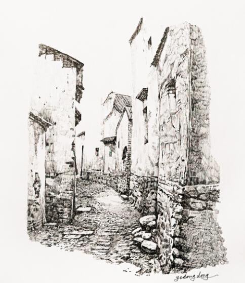 葛冬冬《小巷》速写 20×28cm