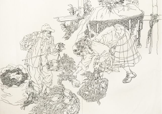 卢英鉴《湖南凤凰古城农贸集市速写之二》速写 41×59cm