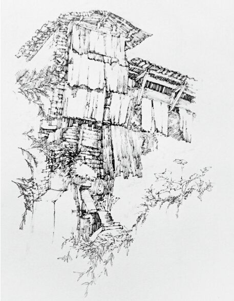 朱永忠《张堰民宅》水粉 27×40cm