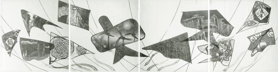邹向群、翟军、乔晓燕张琴妹、龚欢英、汤春辉、许峰、姚萍、倪庆、冯冬梅、徐玲瑛、朱丽萍《腾飞奉贤》版画 90×340cm