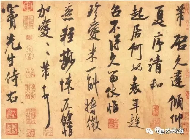 释文:芾启。久违。倾仰。夏序清和。起居何如。衰年趋(趋)召。不得久留。伏惟珍爱。米—斛。将微意。轻尠(鲜)悚仄。馀惟加爱加爱。芾顿首。窦先生侍右。
