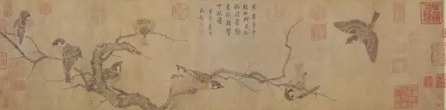 作出这样的艺术处理。既与这位来自民间的画师的实际生活感受有关,也与作品摆设的环境有关,宫廷中有不少厅堂需要画壁和陈列屏风,这种需求迫使画家不能再采用小尺幅的折枝小品形制。而是要放大尺寸。取整铺、或巨幛立轴的大构图;这样的大画只有通过背景衬托、气氛渲染才能彰显气势。必要时还要营造出特有的情趣才能让人觉得耐看。
