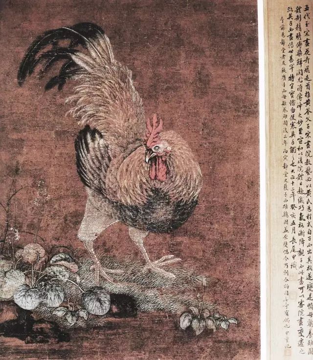 上个世纪80年代初,画坛泰斗刘海粟应日本绘画大师平山郁夫之邀赴日访问,抽空拜访了旅日收藏家朱福元并欣赏他的收藏。看见的便是这幅《母鸡养雏图轴》,看到这幅画,刘海粟面露惊喜之色,随即又长叹一声:“可惜啊!画是名画,可你大概不知道,崔白另外还有一幅《雄鸡傲睨图轴》,是和这幅配对的,我记得宋徽宗的《宣和画谱》上有记载。要是能让那只‘公鸡’和这只‘母鸡’配对,那就更好了。”数年后,朱福元终于在日本的一个古玩市场举办的中国书画展上,高价觅得日思夜想的《雄鸡傲睨图轴》,让崔白的这两幅作品能够团圆!