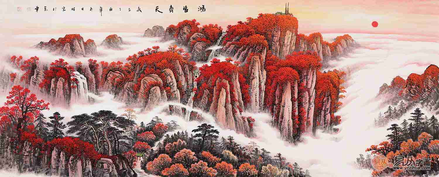 国画泰山日出李林宏新品力作山水画《鸿福齐天》作品来源:易从网