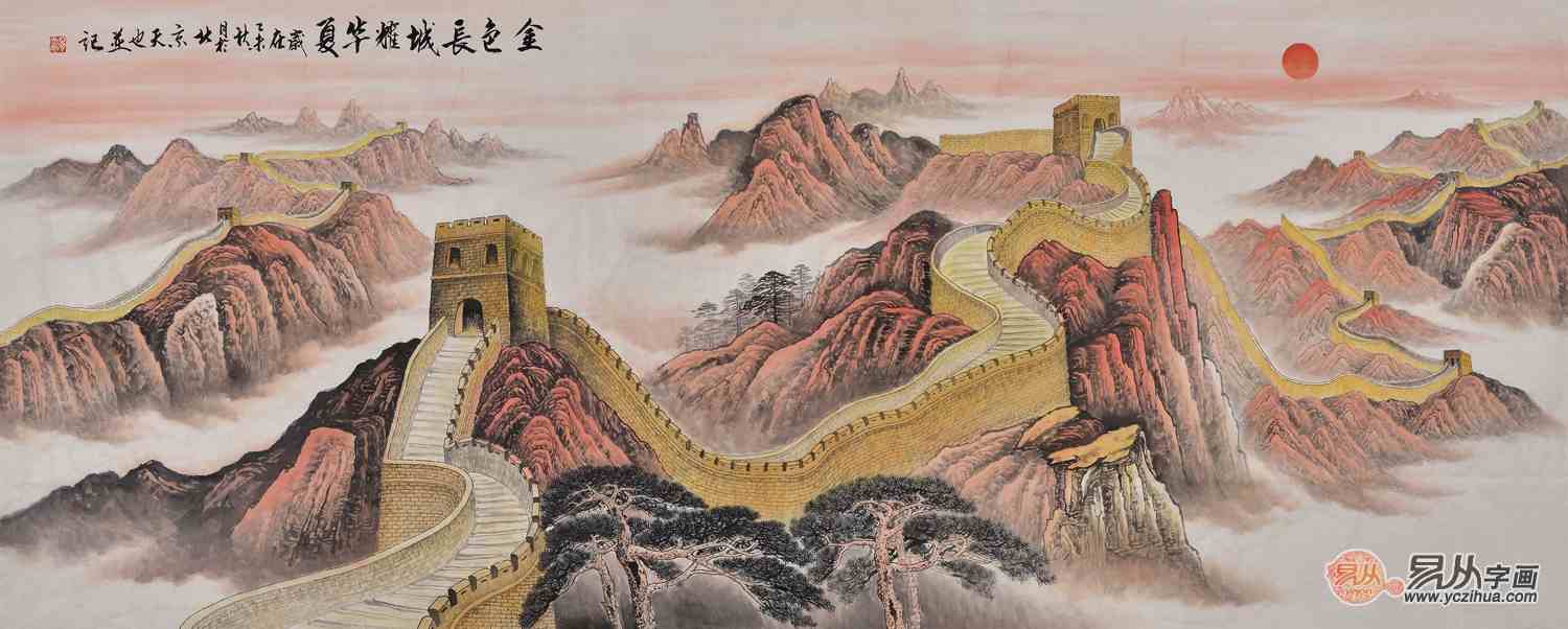 步步高升图易天也山水画作品《金色长城耀华夏》作品来源:易从网