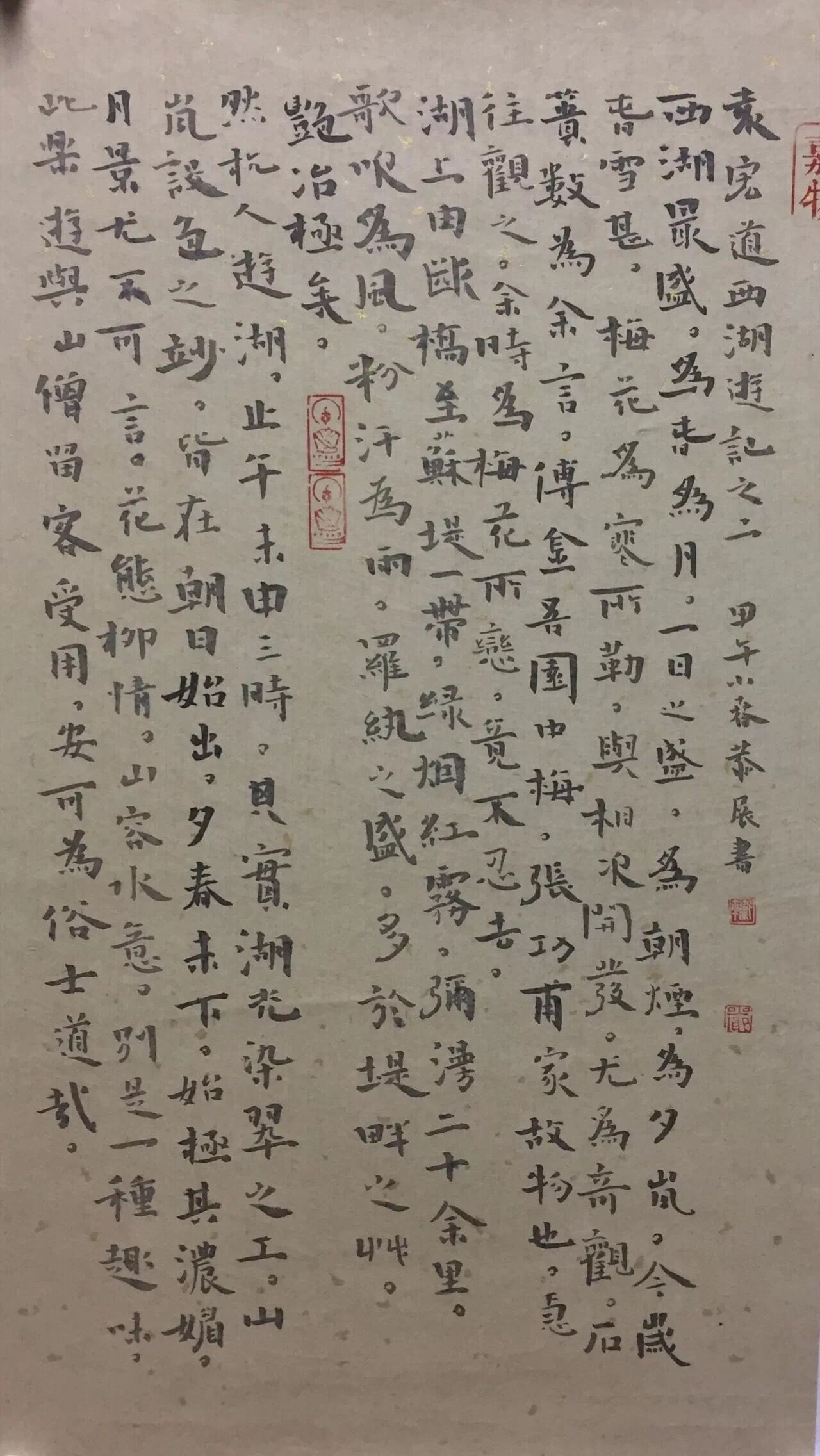 楷书小中堂《袁宏道西湖游记》