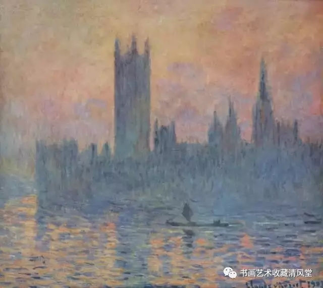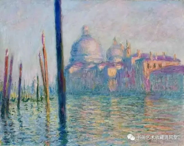 这是莫奈发挥印象派技法表现水城威尼斯梦幻迷朦流光倒影的经典之作。