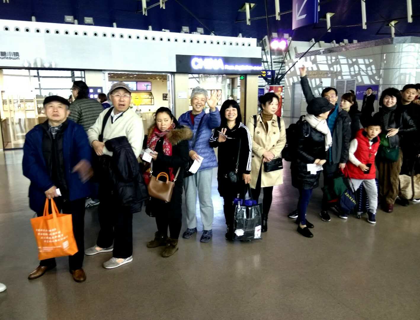 年初五的上午九点半,在浦东国际机场T1航站楼,大家准备出发了。