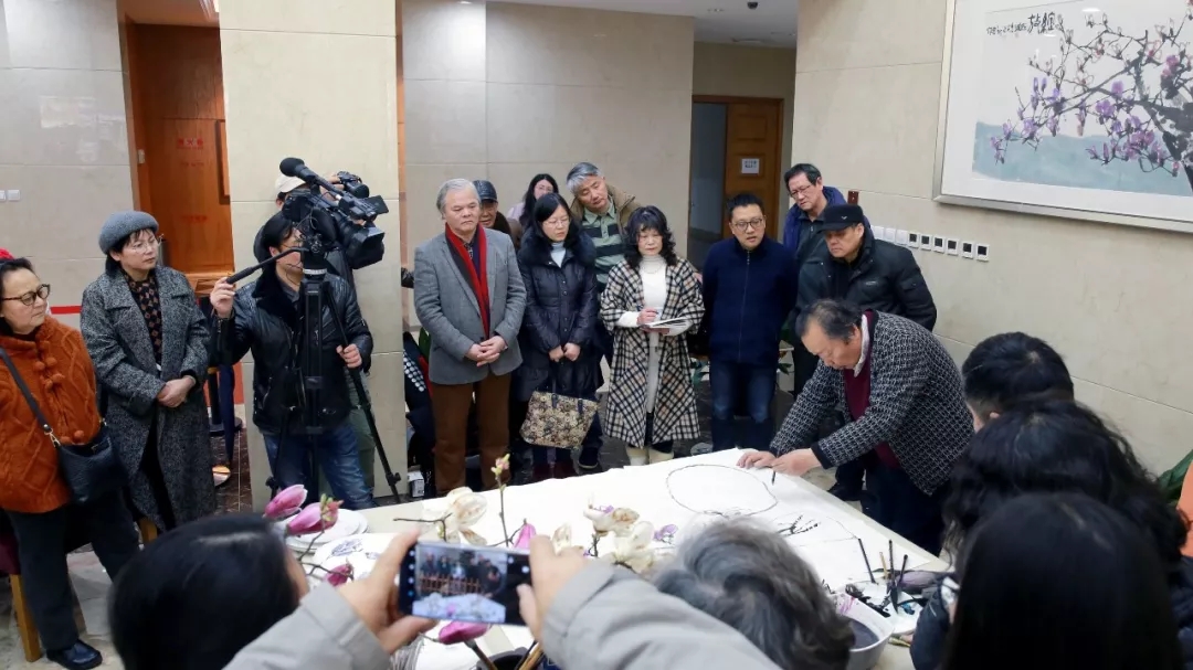 下午,杨正新于上海市文联示范玉兰花的创作过程,分步展示、解读,为观众讲解更为细致的创作思路。