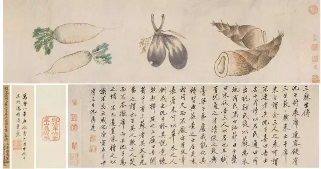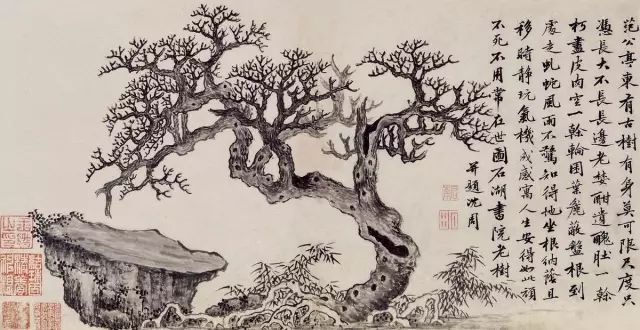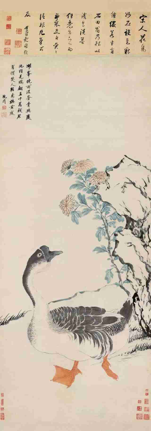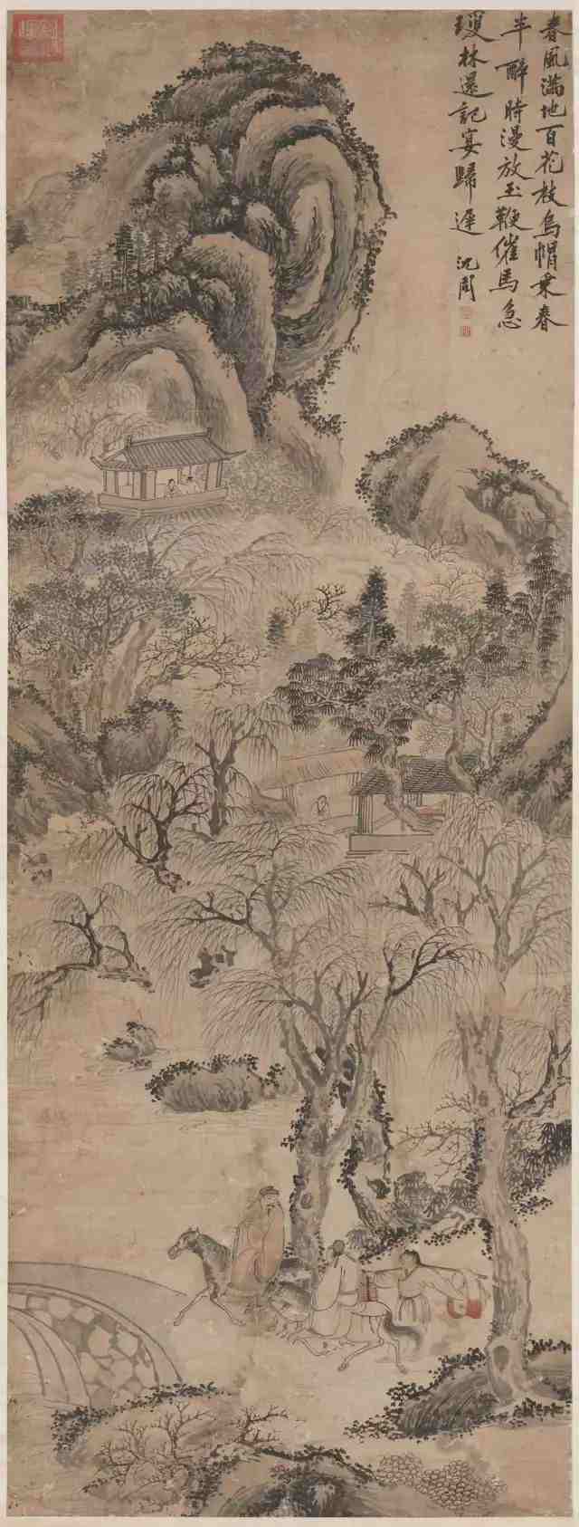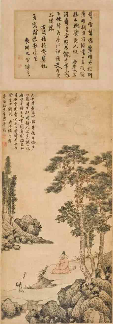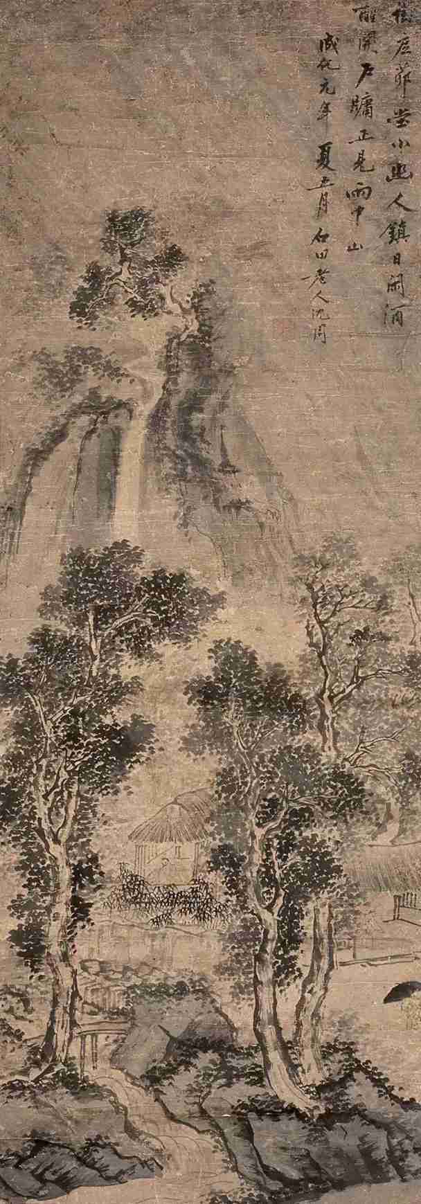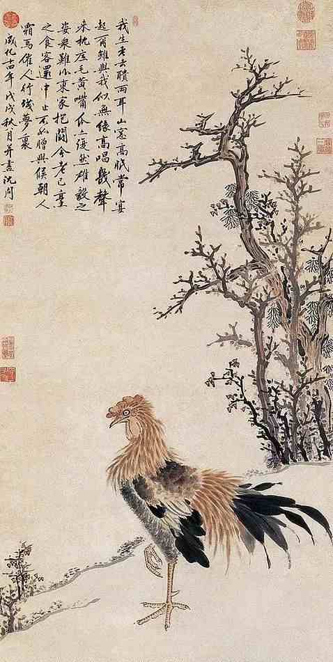 沈周(1427-1509),字启南,号石田、白石翁、玉田生、有竹居主人,明代绘画大师,吴门画派的创始人,长洲(今江苏苏州)人。不应科举,长期以事绘画和诗文创作。其绘画用笔劲捷有力,融揉参杂,具自家风貌。写意花卉鸟兽甚佳,与文徵明、唐寅、仇英并称“明四家”。