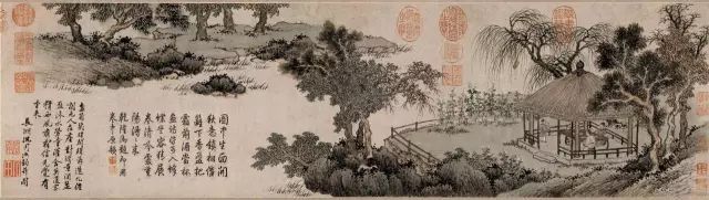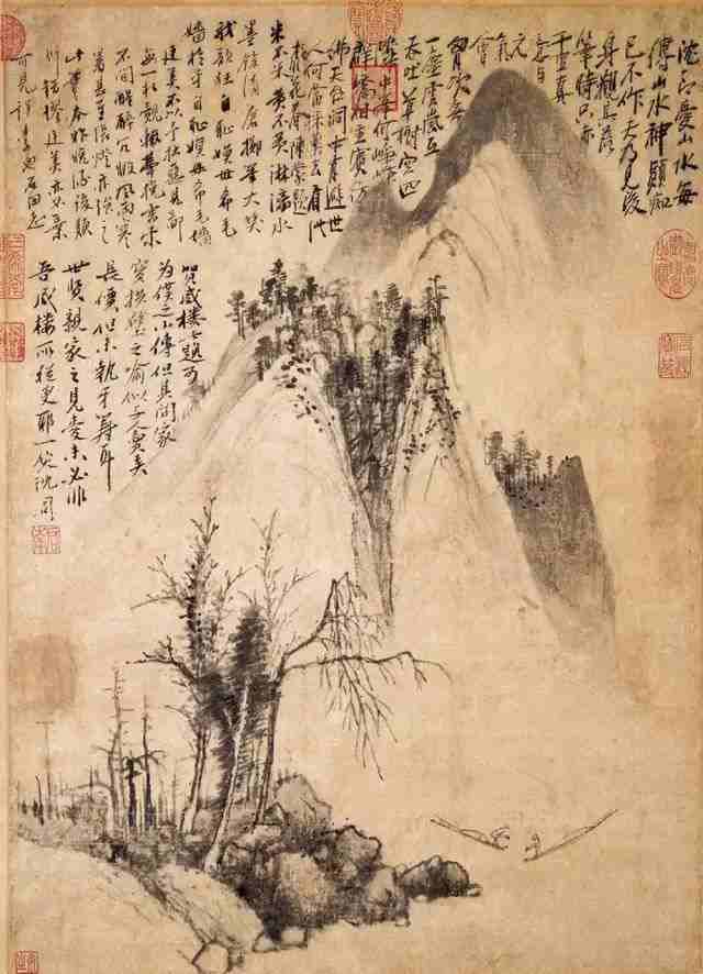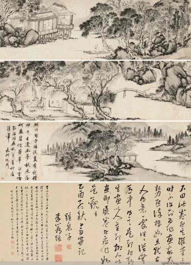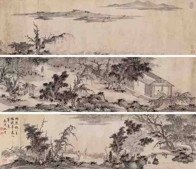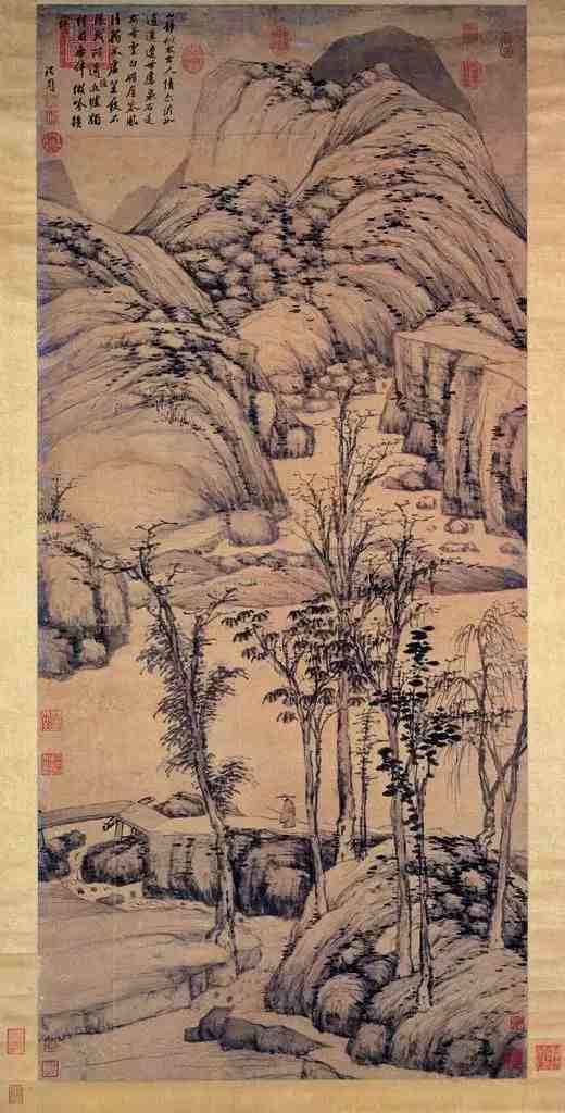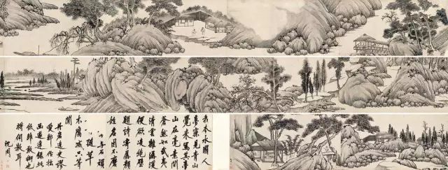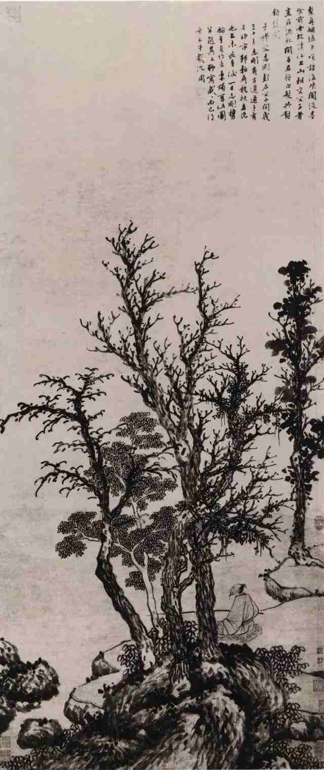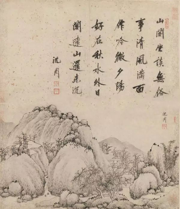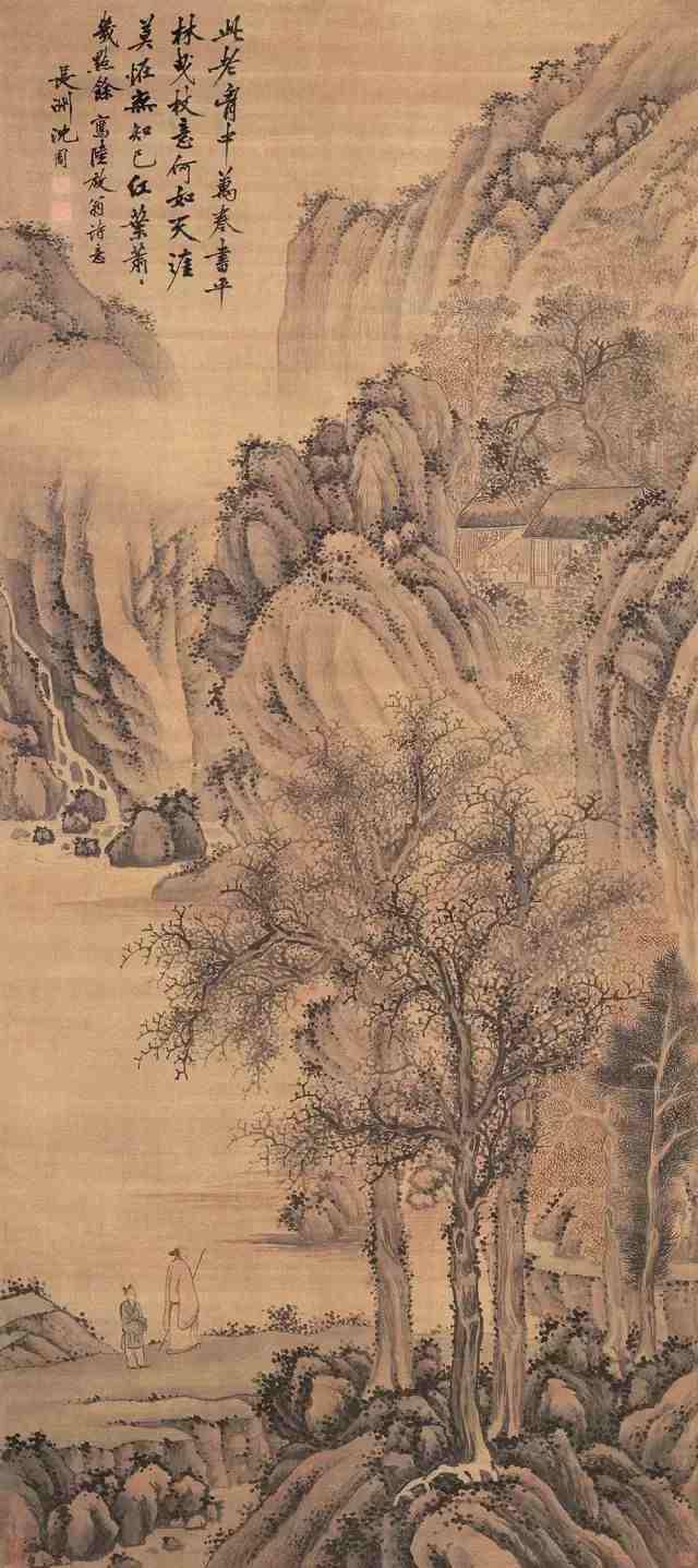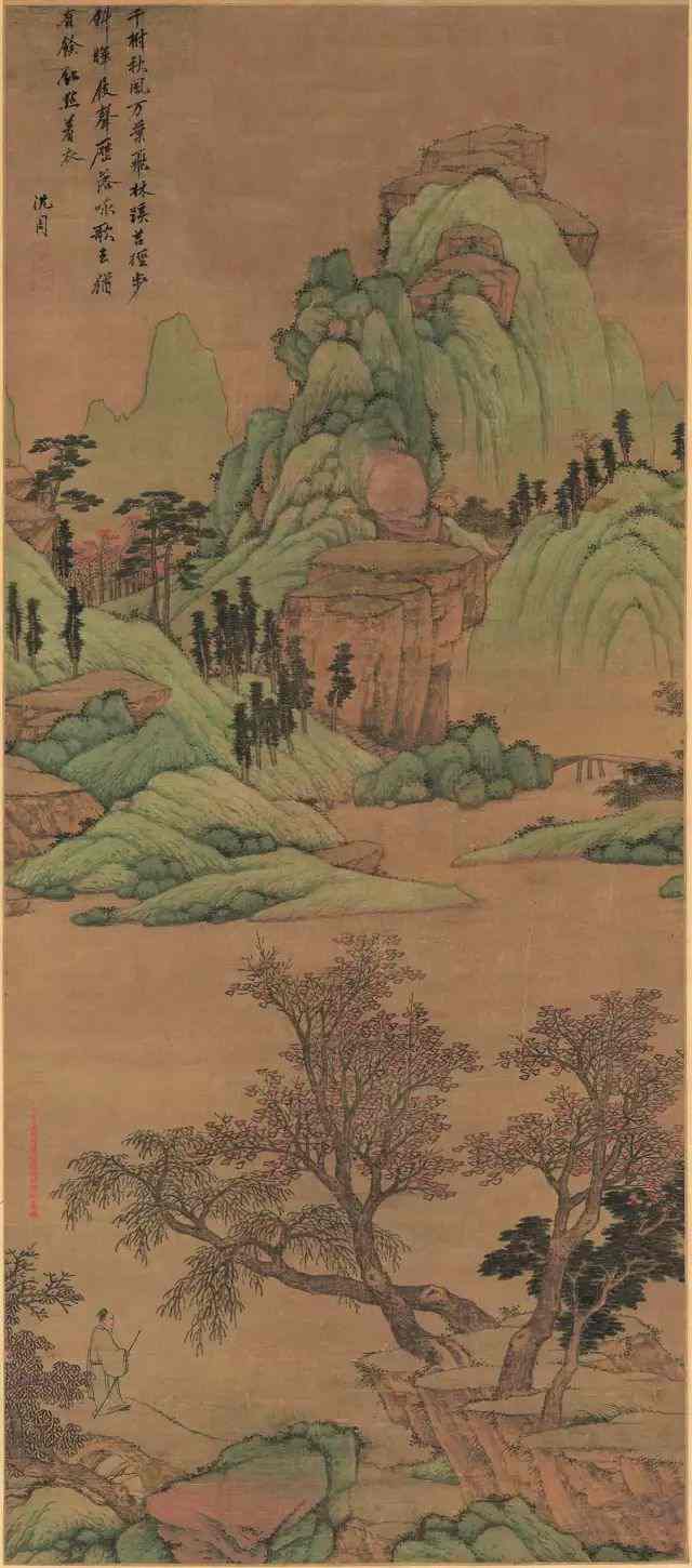 沈周早年多画小画,40岁以后才画大幅绘画作品,中年画法严谨,用笔沉着,晚年笔墨豪放,气势雄强。 沈周的绘画,技艺全面,在学习前人的基础上有自己的创造。