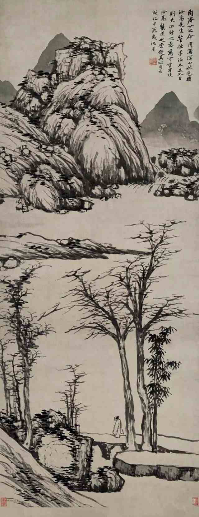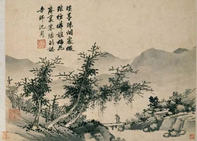 沈周中年成为画坛领袖,技法严谨秀丽,用笔沉着稳练,内藏筋骨。晚年性情开朗,笔墨粗简豪放,气势雄浑。纵观沈周之绘画,技法全面,功力浑厚,在师宋元之法的基础上有自己的创造,进一步发展了文人水墨山水、花鸟画的表现技法,被誉为吴门画派领袖。