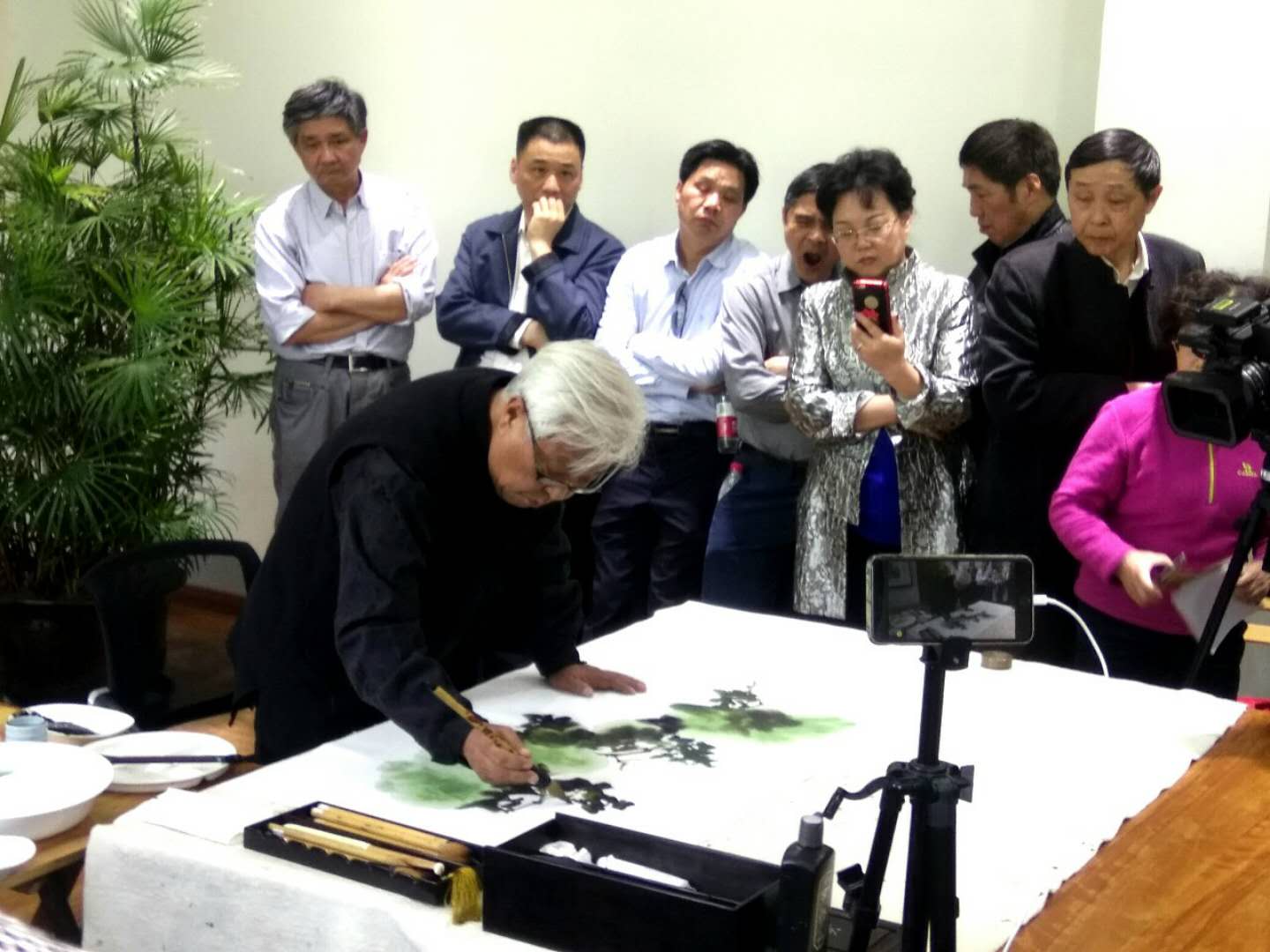 活动今天上午十点钟在上海植物园牡丹园举行,这次活动邀请了上海著名花鸟画画家陈世中老师做现场示范,上海美术家协会副主席兼秘书长陈琪老师也早早地领导现场,参加今天活动的画家和美术爱好者共计六十多人,今天的活动得到了上海植物园领导的大力支持,下午一点钟,媒体进行了现场直播,园领导吴园长首先作了热情洋溢的讲话,然后陈世中老师开始了四尺整张的牡丹花创作,活动正在进行中。