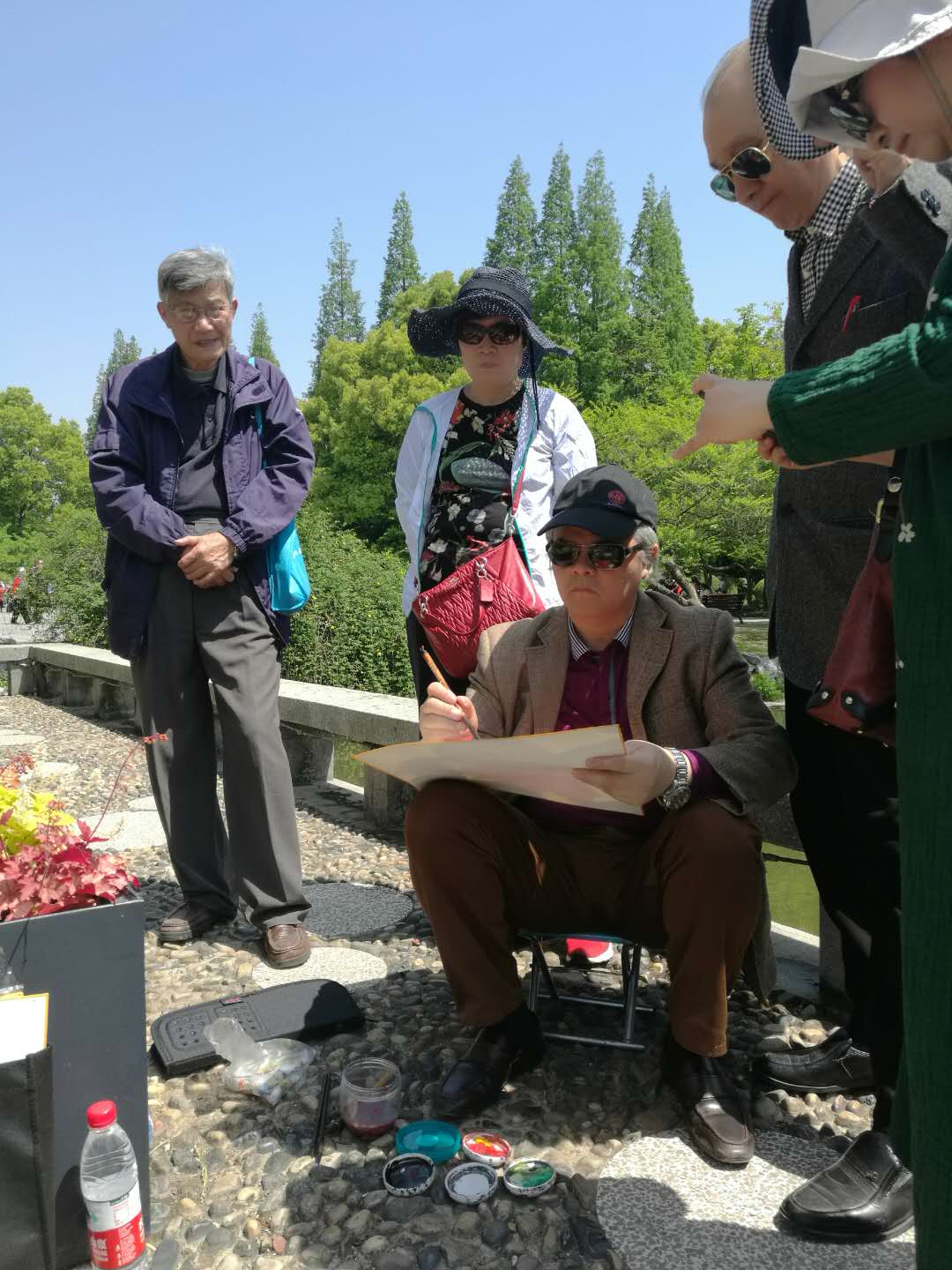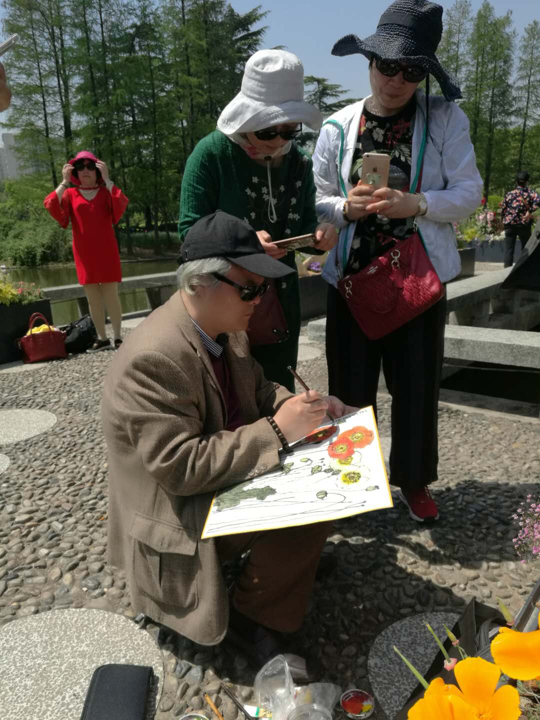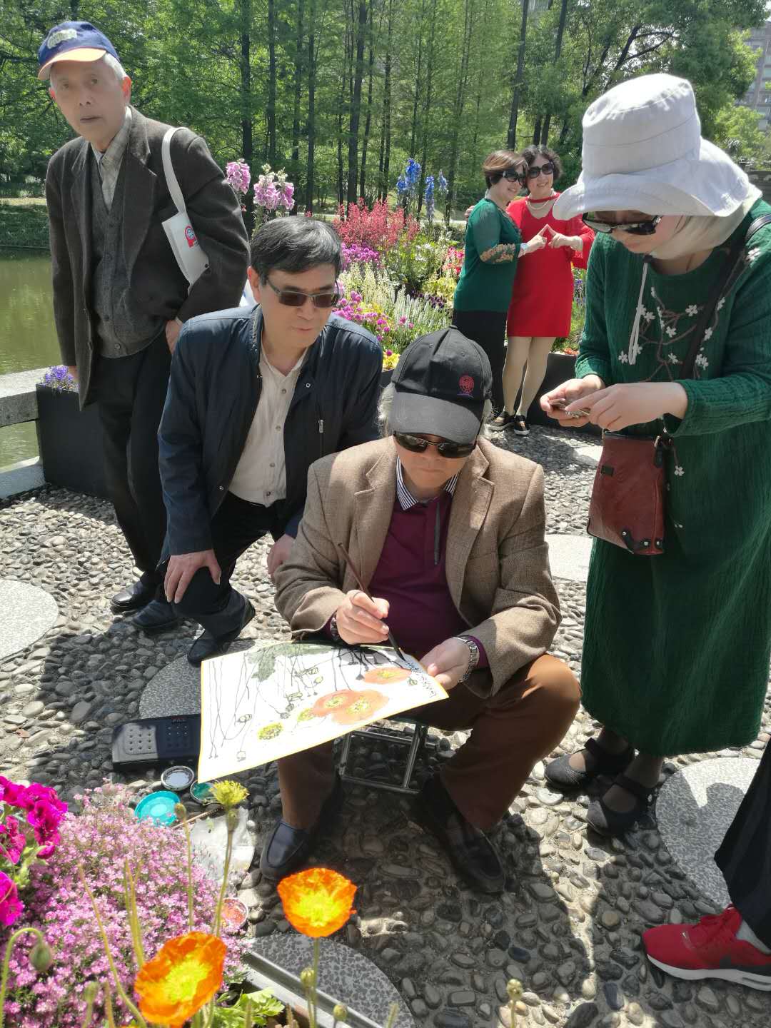 “一花一世界”名家写生示范,第四期邀请了著名花鸟画、画家陈世中老师,陈琪老师昨天上午也早早地来到植物园现场和陈世中老师商谈整个活动流程的安排,陈琪老师首先讲了话,然后陈世中写生开始……,陈琪老师也抓紧时间来到植物大楼写生了。