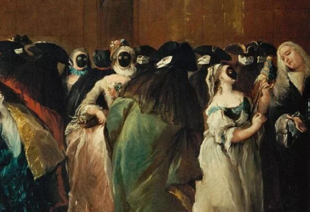 ▲ 弗朗西斯科·瓜尔迪,《The Ridotto of Palazzo Dandolo at San Moisè with Masked Figures Conversing》,1750年
