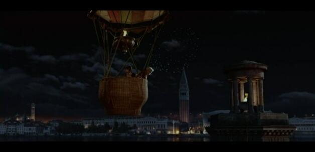 ▲ 卡萨诺瓦和弗朗西斯卡在威尼斯嘉年华时登上热气球。图片来源:电影《卡萨诺瓦》(2015)截图
