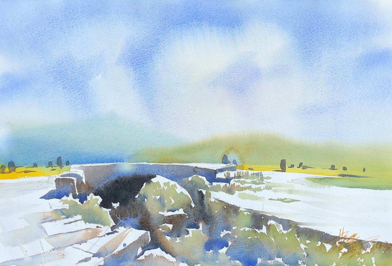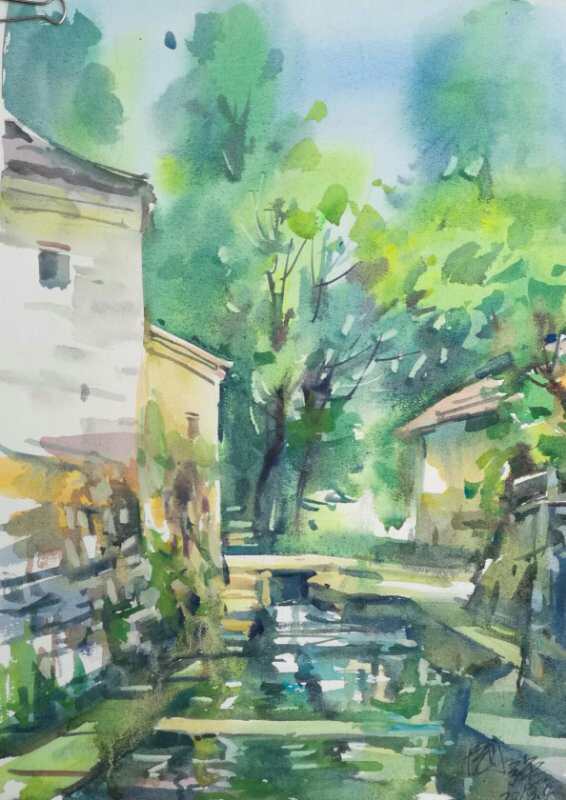 作者:武国强 作品:水东十八踏 水彩 尺寸(38×54cm)